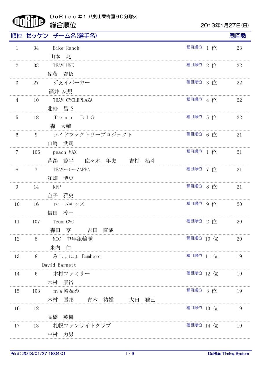 ●大会のリザルトは「DoRideリザルト」 https://doride-result.blog.jp/ に移行しました。