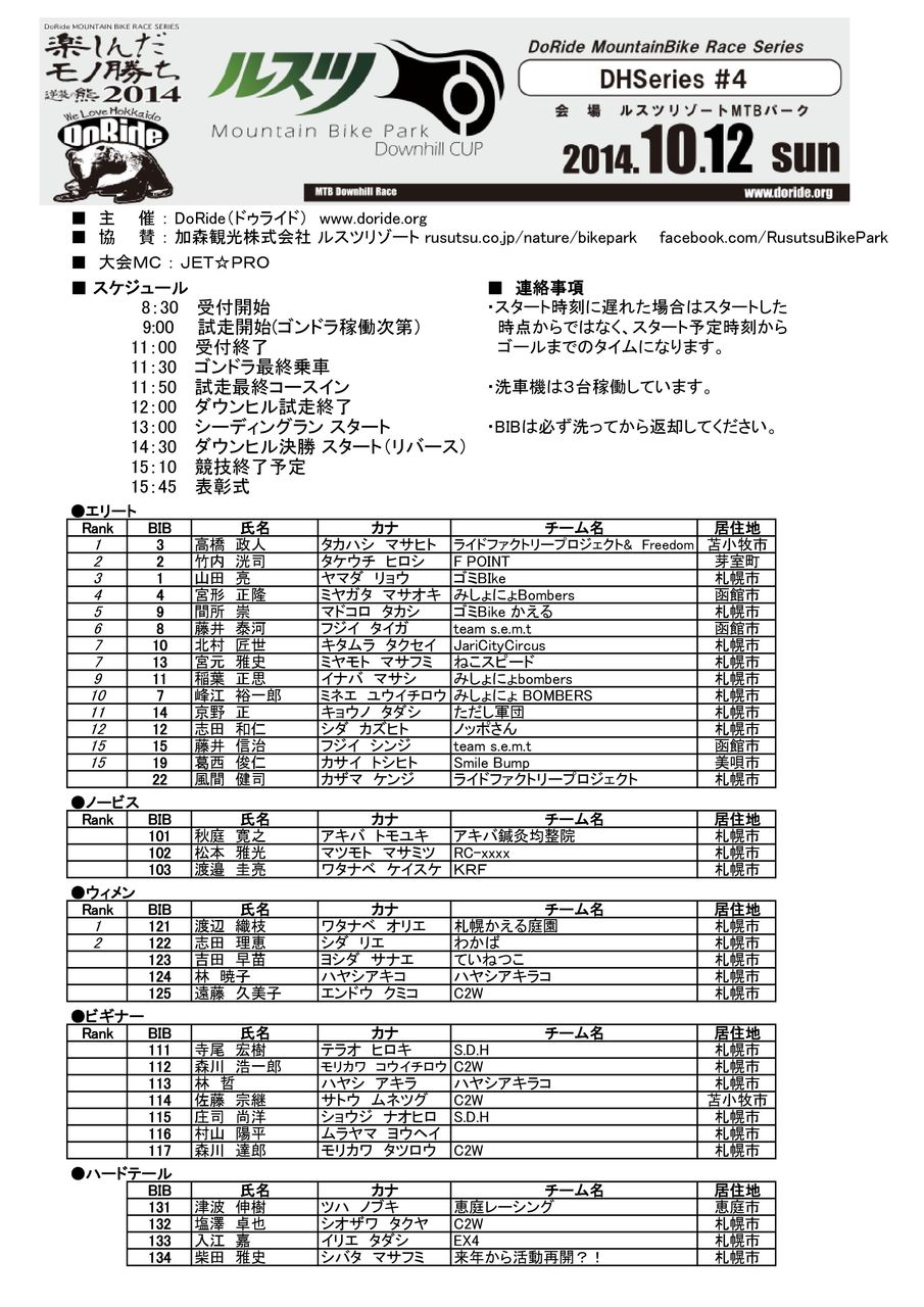 ルスツMTBパークダウンヒルカップ配布用プログラム。