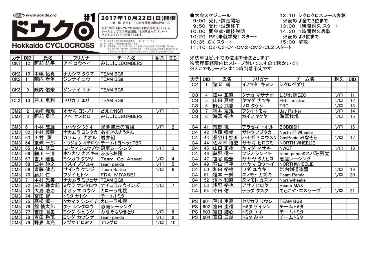 【協力】北海道シクロクロス#1 配布用プログラム
